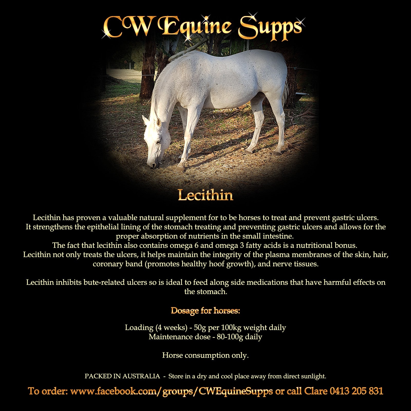 ~ Lecithin has proven a valuable natural supplement for to be horses to treat and prevent gastric ulcers. It also has shown to benefit other animals as well as man when added to their diets.